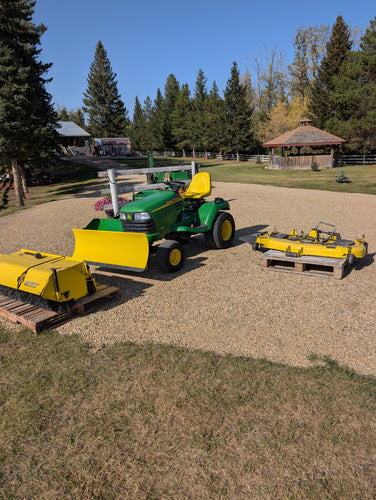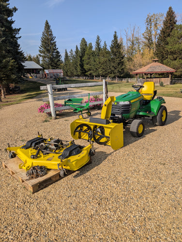 John Deere 425 with 647 JD tiller and 54" mowing deck