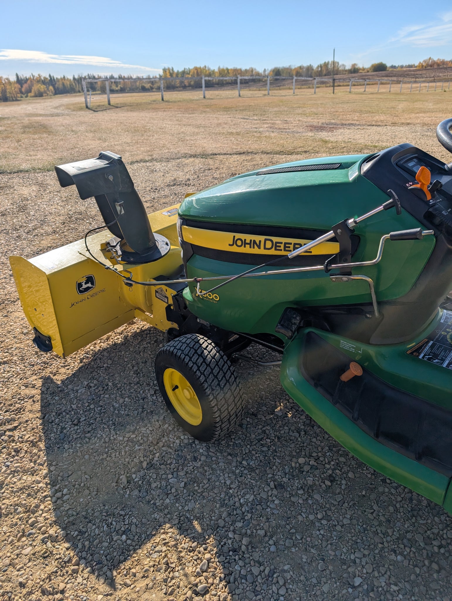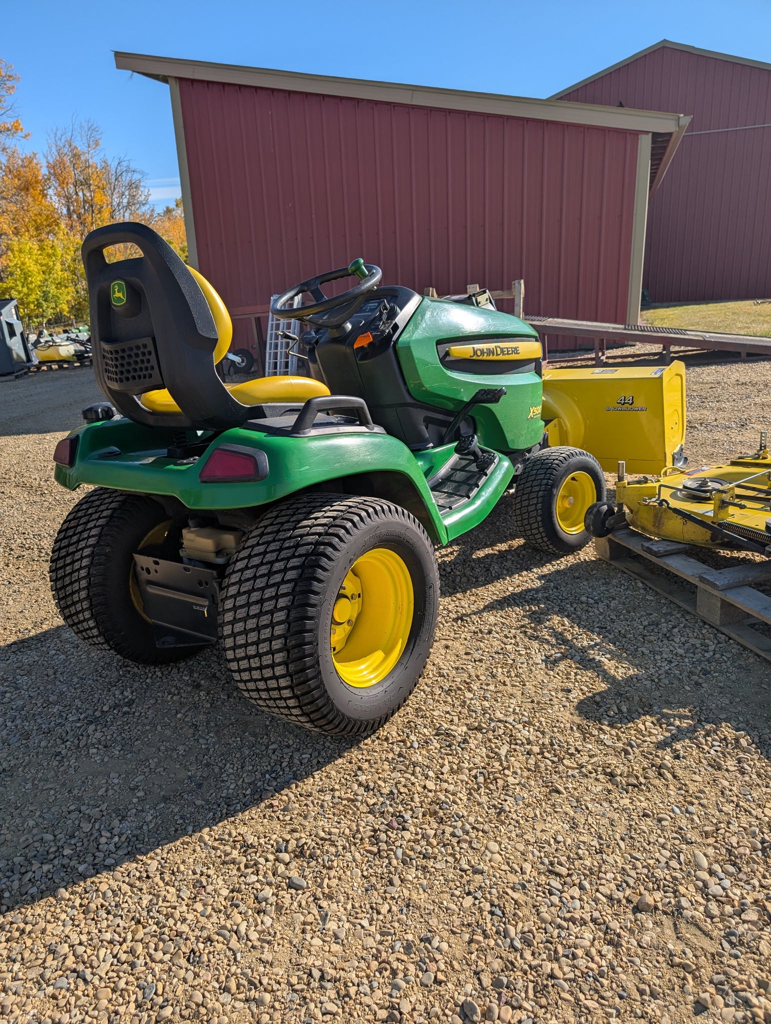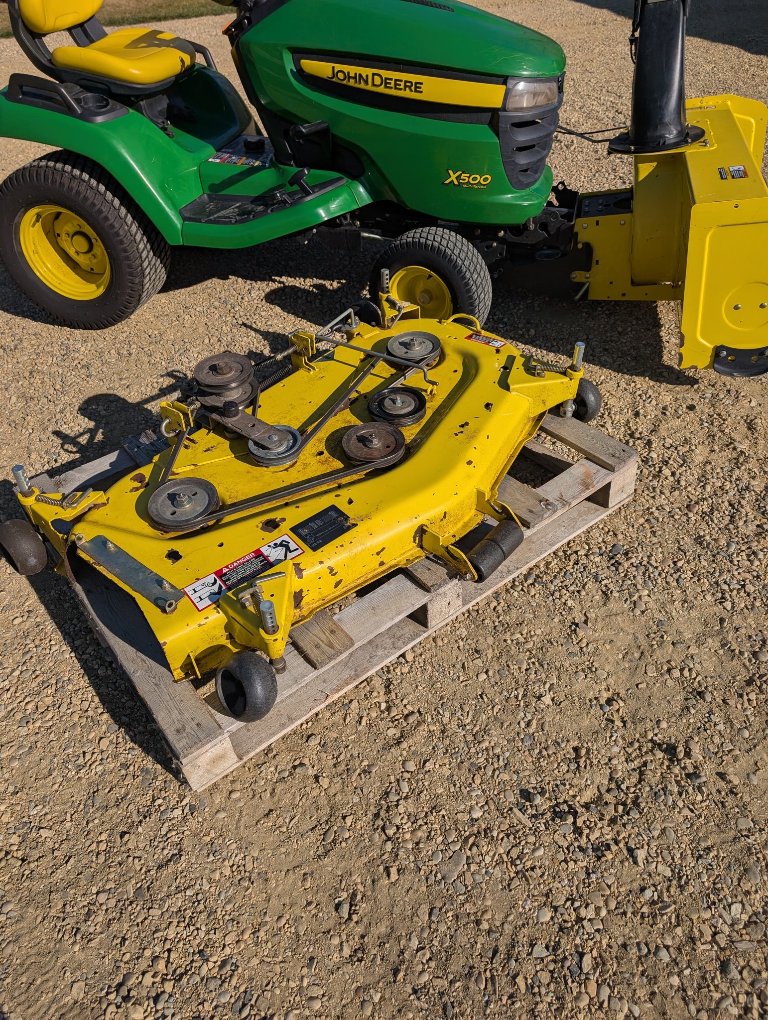 John Deere X500 snowblower mowing deck package
