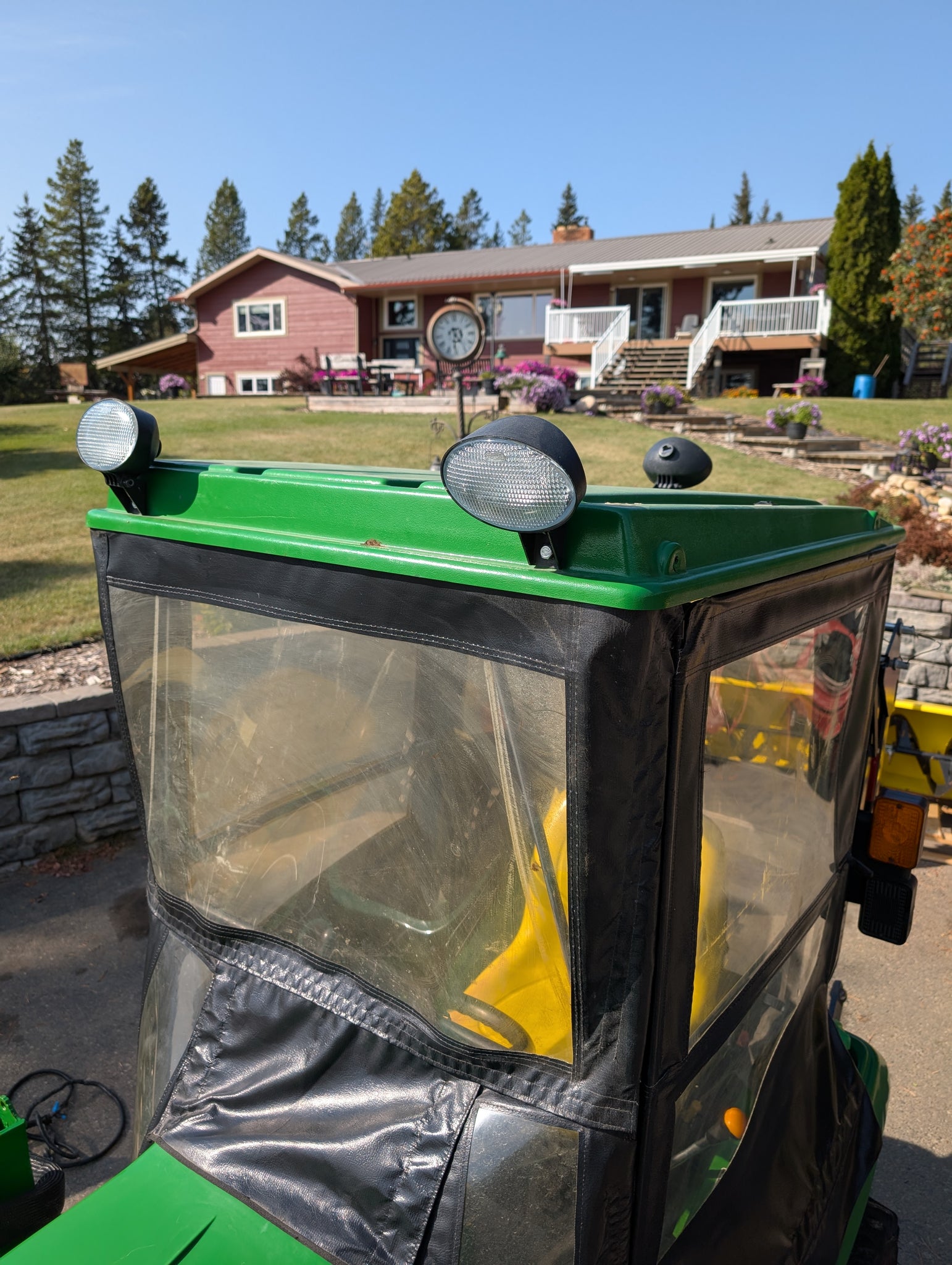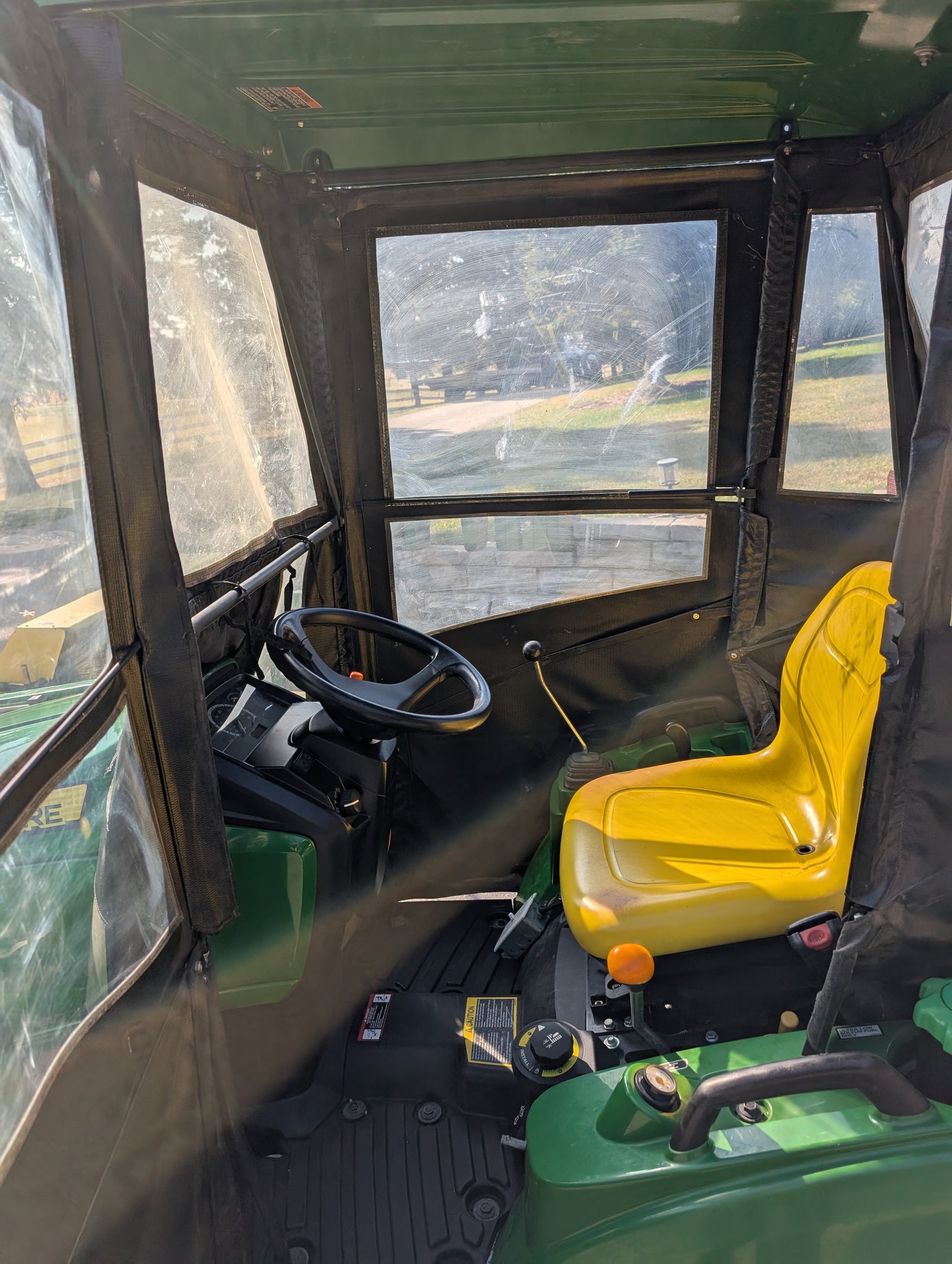 Up for sale John Deere 1023E,1026R,1025R soft cab, Comes with all the brackets and wire harness for top lights.