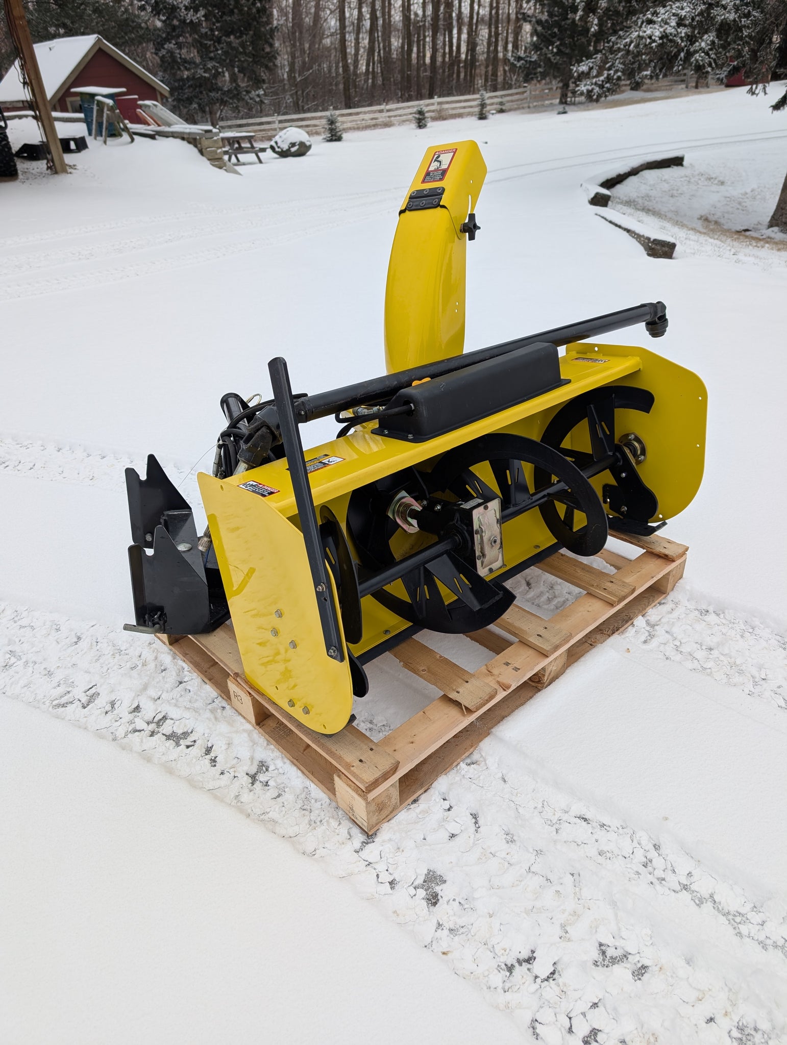 John Deere 47" snowblower in great shape, Came off a 1025R. This package comes with quick hitch, front pto kit, and all mounting brackets for 1023E,1025R, 1026R. Also have quick hitches and Front Pto kits for multiple different John Deere models if Interested.in mint used condition
